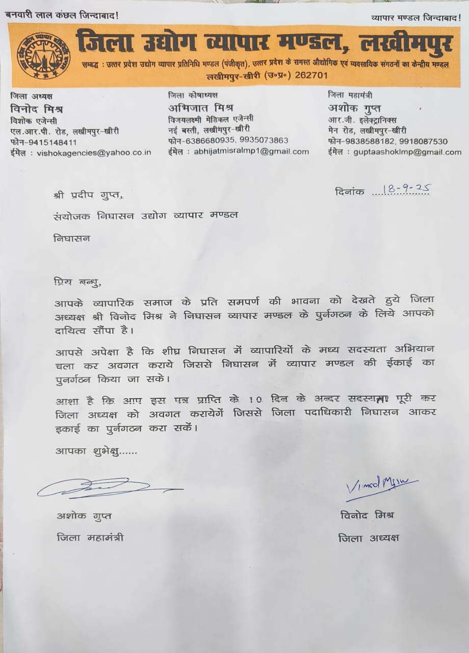 कई वर्षों से निष्क्रिय पड़े निघासन उद्योग व्यापार मंडल के पुनर्गठन का समय आ गया है। यह केवल संगठन का पुनरुद्धार नहीं है, बल्कि व्यापारी समाज की ताक़त और आवाज़ को फिर से बुलंद करने का संकल्प है।